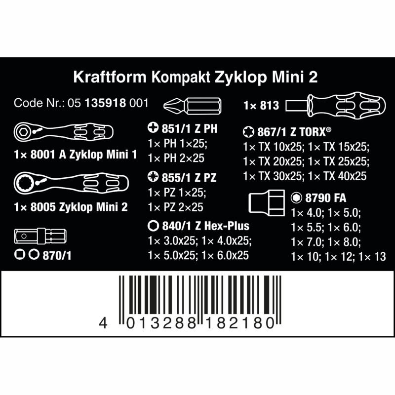 Artikelnummer: 05135918001 OverzichtWera Kraftform Kompakt Zyklop Mini 2, 27-delig 05135918001