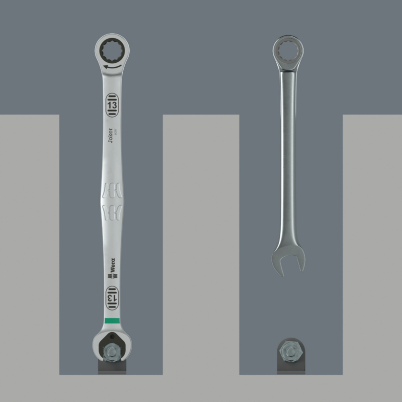 - Uiterst robuuste ringratel Take it easy tool finder: Met kleurcodering op maat en ingelaserde maatcode