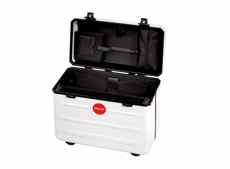 De PARAT PARADOC TronX pilotenkoffer maakt indruk met zijn slimme interieurontwerp. Met een intern volume van circa 29 liter en een extra gewatteerd compartiment voor laptops is deze koffer de ideale reisgenoot voor zakenreizigers. De koffer is gemaakt van duurzaam X-ABS kunststof en beschikt over vier extra opbergvakken in de zijwanden, twee vakjes voor visitekaartjes, pennenhouders en een praktisch insteekvak voor kleine spullen. Dankzij de telescopische handgreep en de praktische, hoogwaardige, soepel rollende wielen met kogellagers is de koffer gemakkelijk te vervoeren, zelfs wanneer hij volledig beladen is. De ergonomische PARAT-handgreep kan volledig in de koffer worden opgeborgen. De PARADOC TronX is ook geschikt als businesscase voor vliegreizigers; dankzij het compacte formaat is hij gemakkelijk mee te nemen als handbagage. Twee afsluitbare sluitingen beschermen de inhoud tegen onbevoegde toegang. De PARADOC TronX is verkrijgbaar in zwart of hoogglans wit.